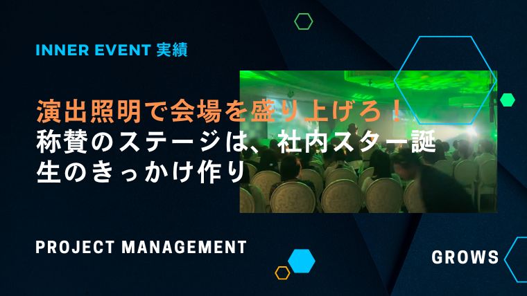 GROWSは、社内表彰式や企業パーティー、キックオフミーティングなど、多岐にわたる社内イベントで豊富な実績を