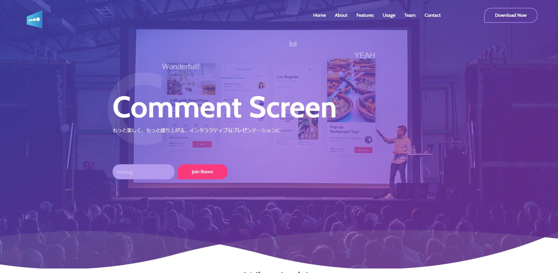 こちらのサービスを使うと、コメントが画面上にリアクションとして表現することができます。