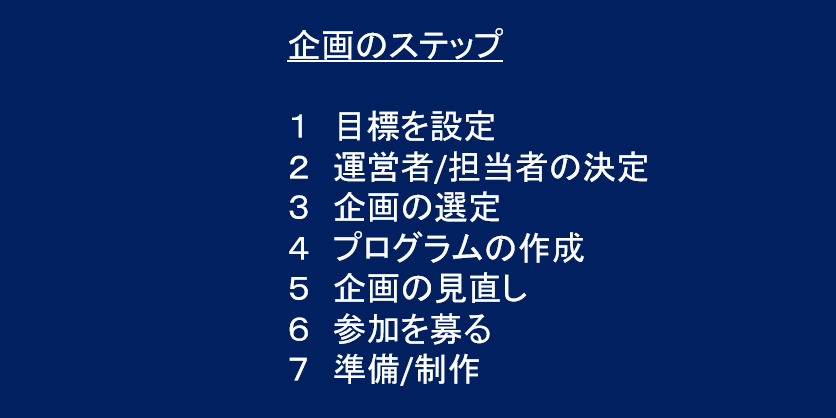 それぞれどのような企画を検討できるのか、はじめにチェックしてみましょう。