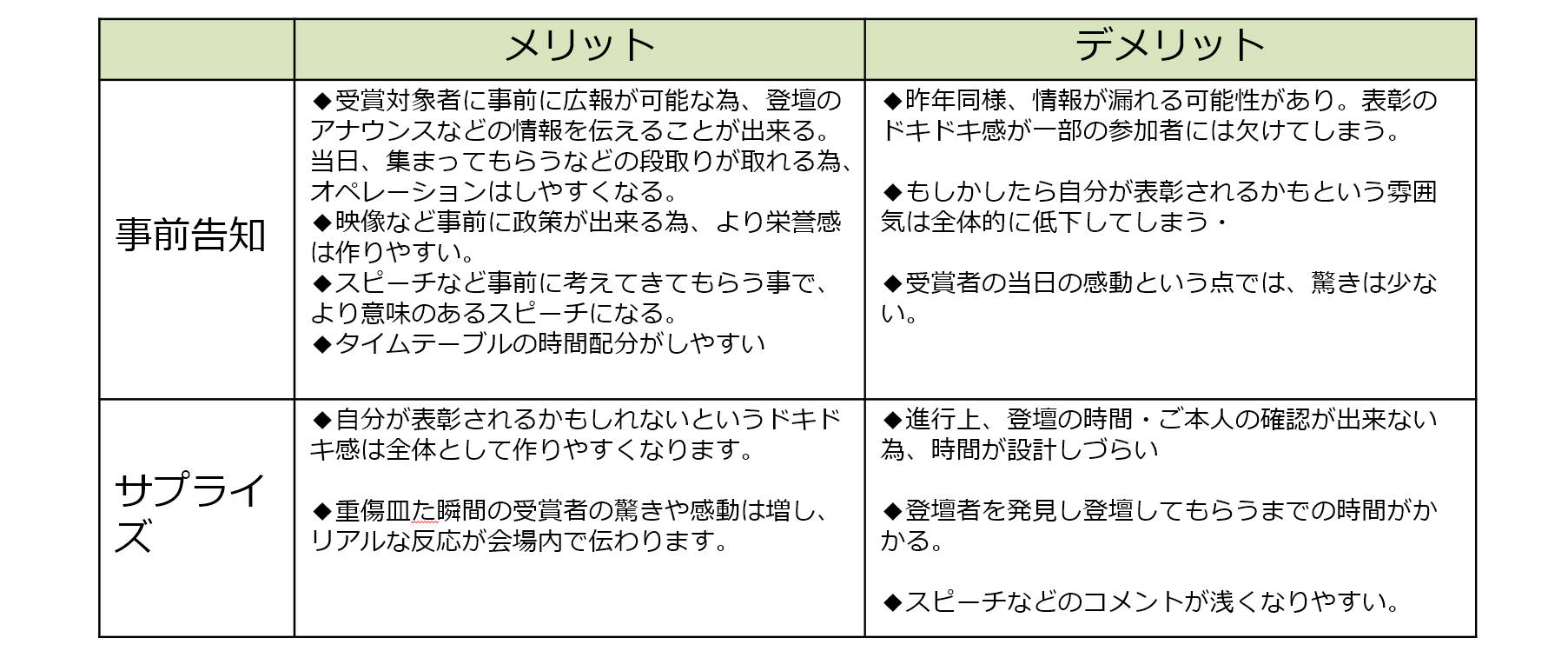 それは、事前告知表彰かサプライズ表彰かです。
