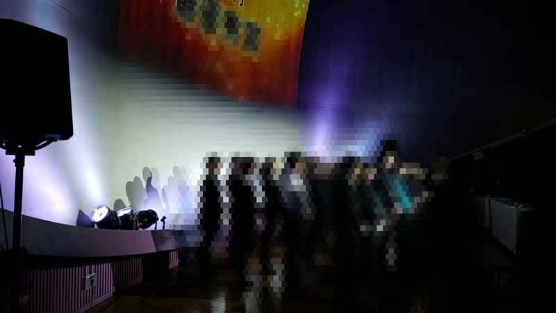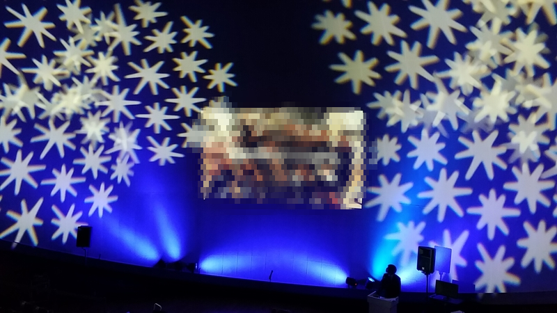 写真ですと表現しずらいのですが、プラネタリウム前面をムービングライトで演出をし、会場内を彩りました。