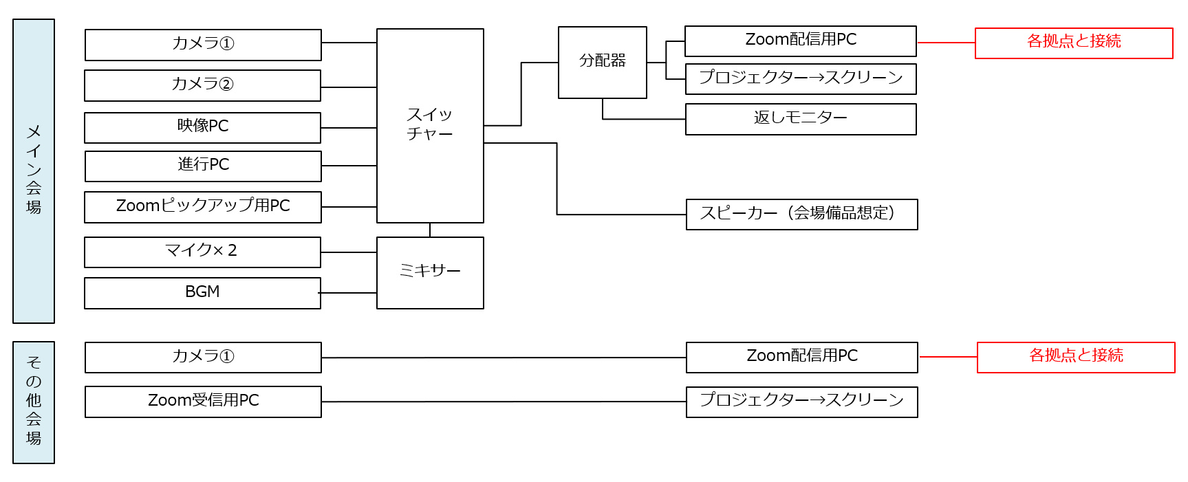 あとは、メイン会場から必要な映像を送り続けることで各会場との連動が実現します。