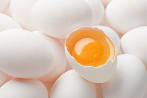 籠の卵を一つずつ順にとって頭で卵を割っていきます。