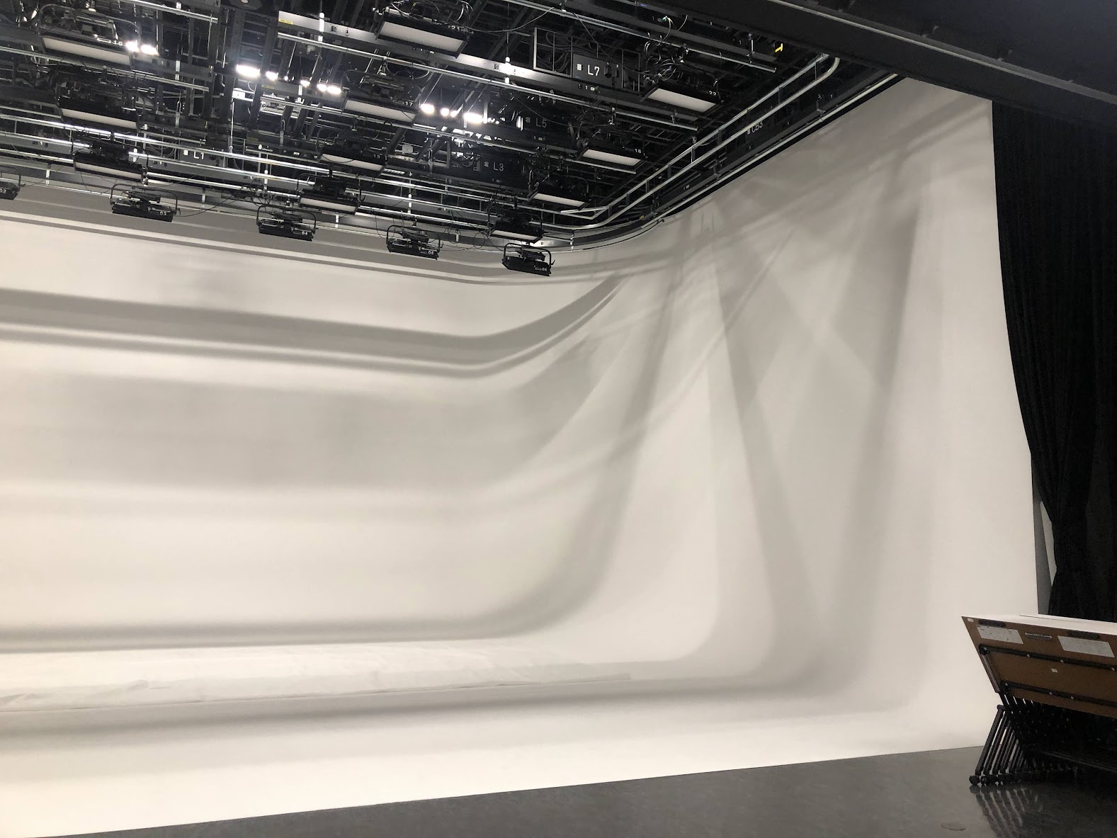 今回はスタジオセットを用意数想定としていたため、白ホリの大型スタジオをご用意しました。