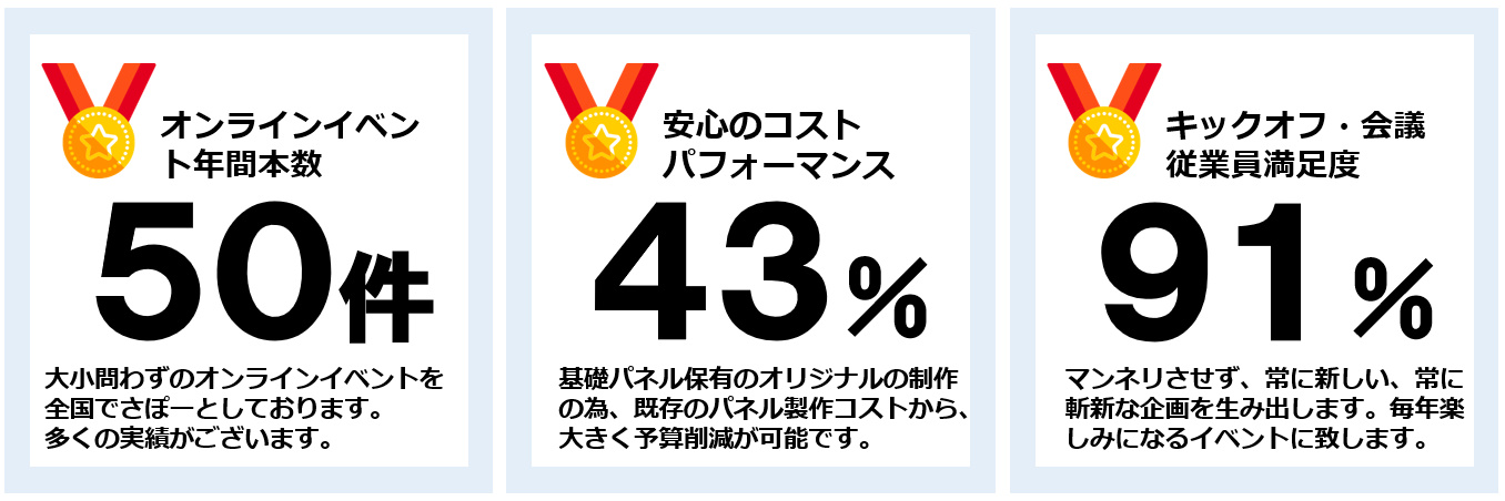 私たちの特徴は、自らがイベント企画会社として年間50件以上のオンラインイベントをサポートさせて頂いております。