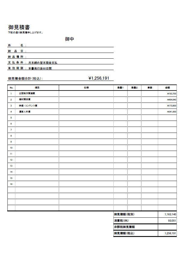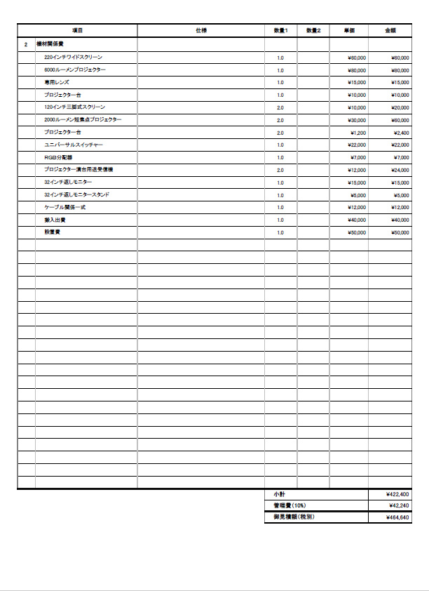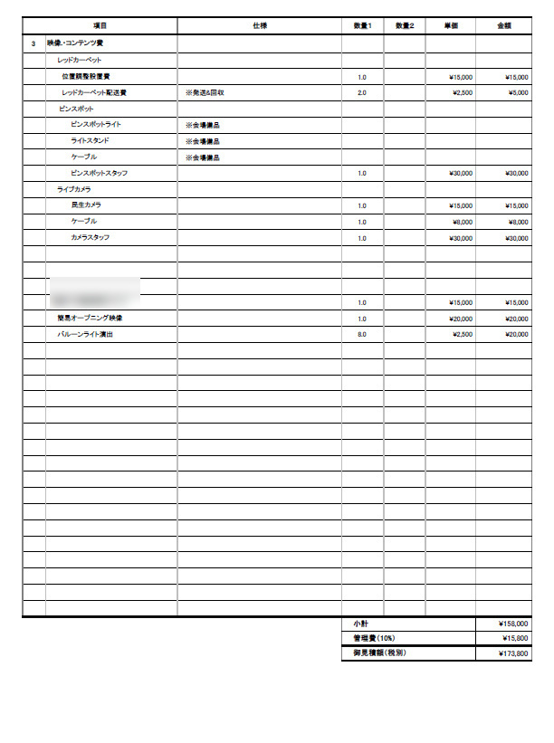 使うのか使わないかの判断が効かないようなケースも多々あります。またイベント会社様によって見積もりの項目の作り方も違うため