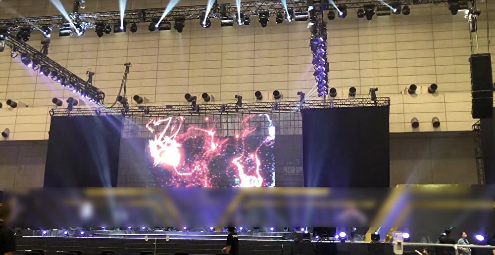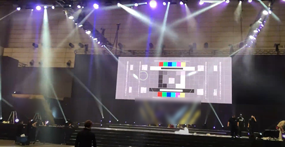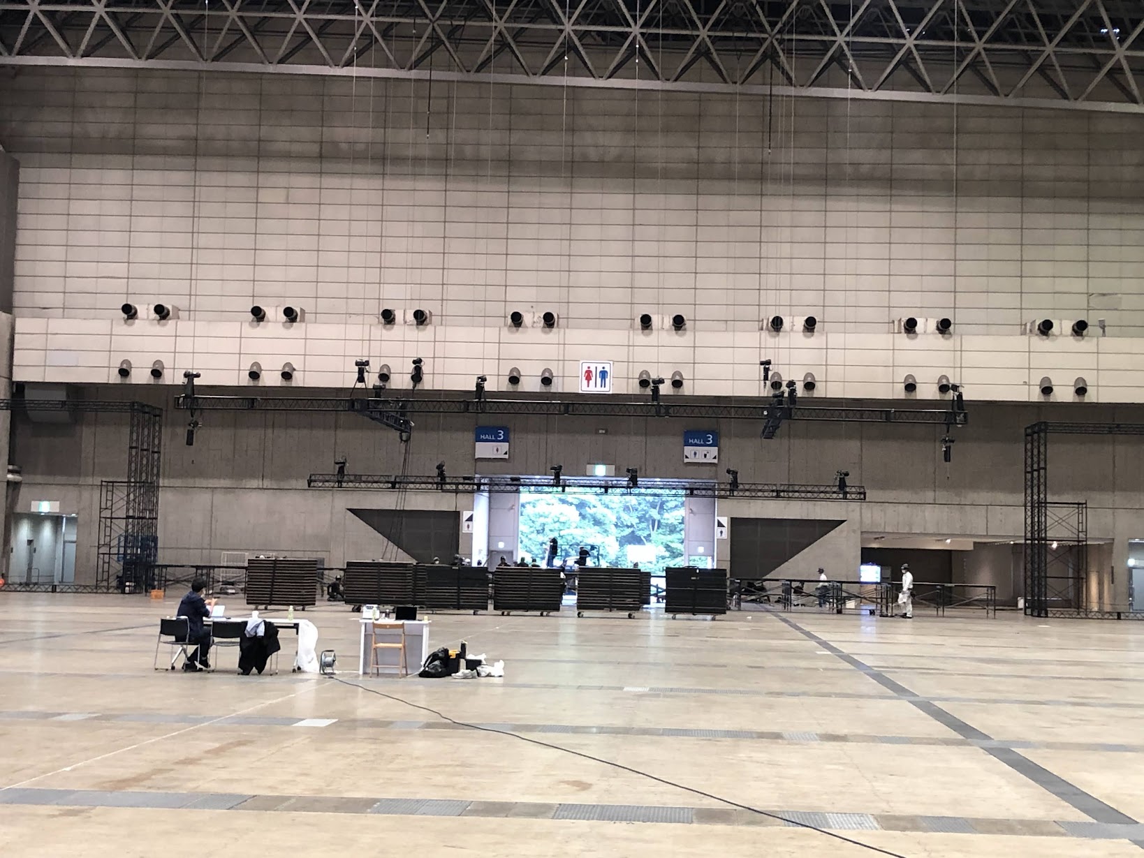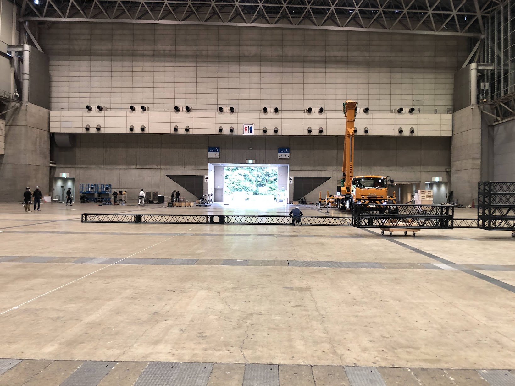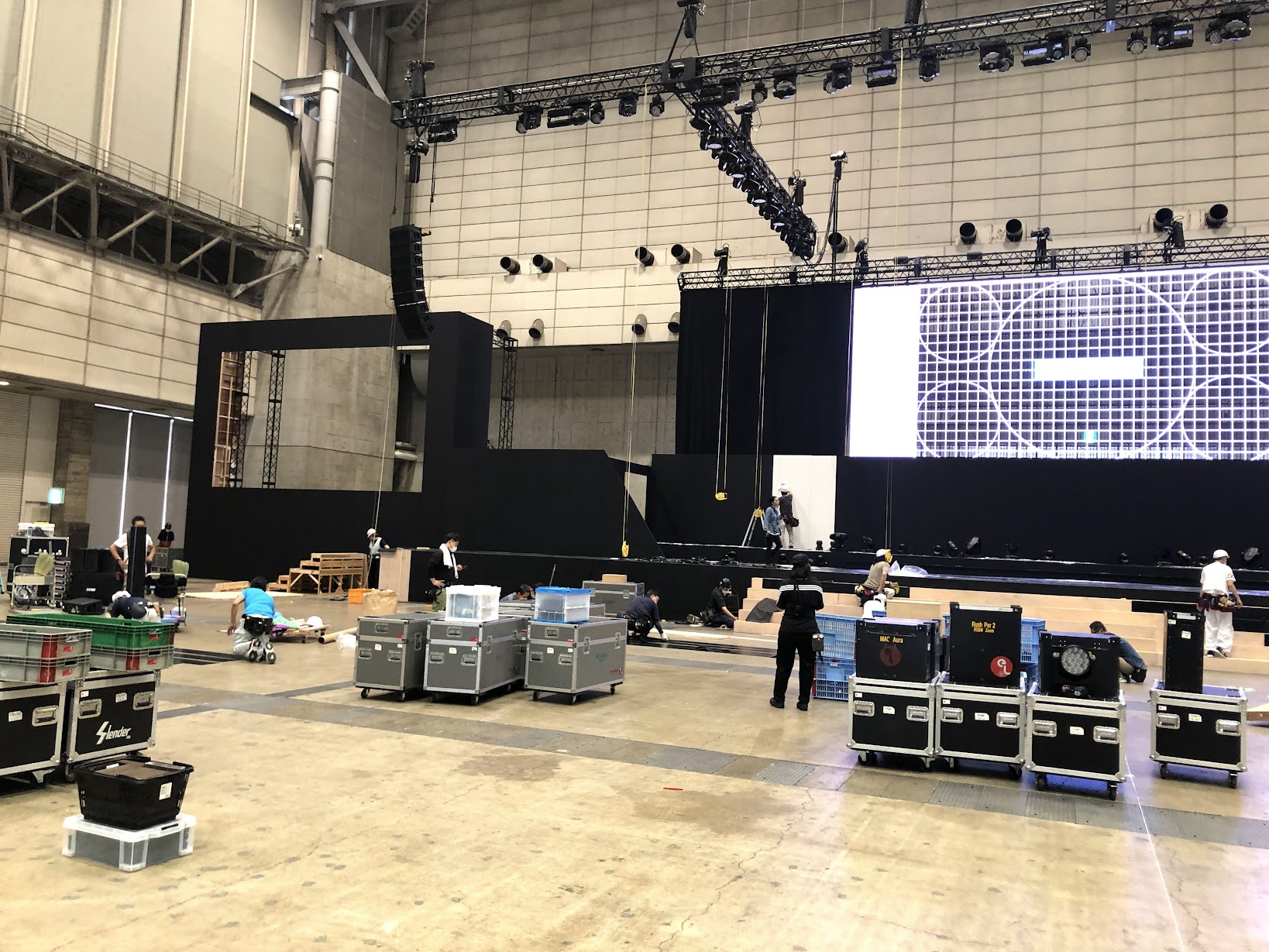 ステージの施工と映像チームが作り上げています。いよいよステージ感ができてきました。