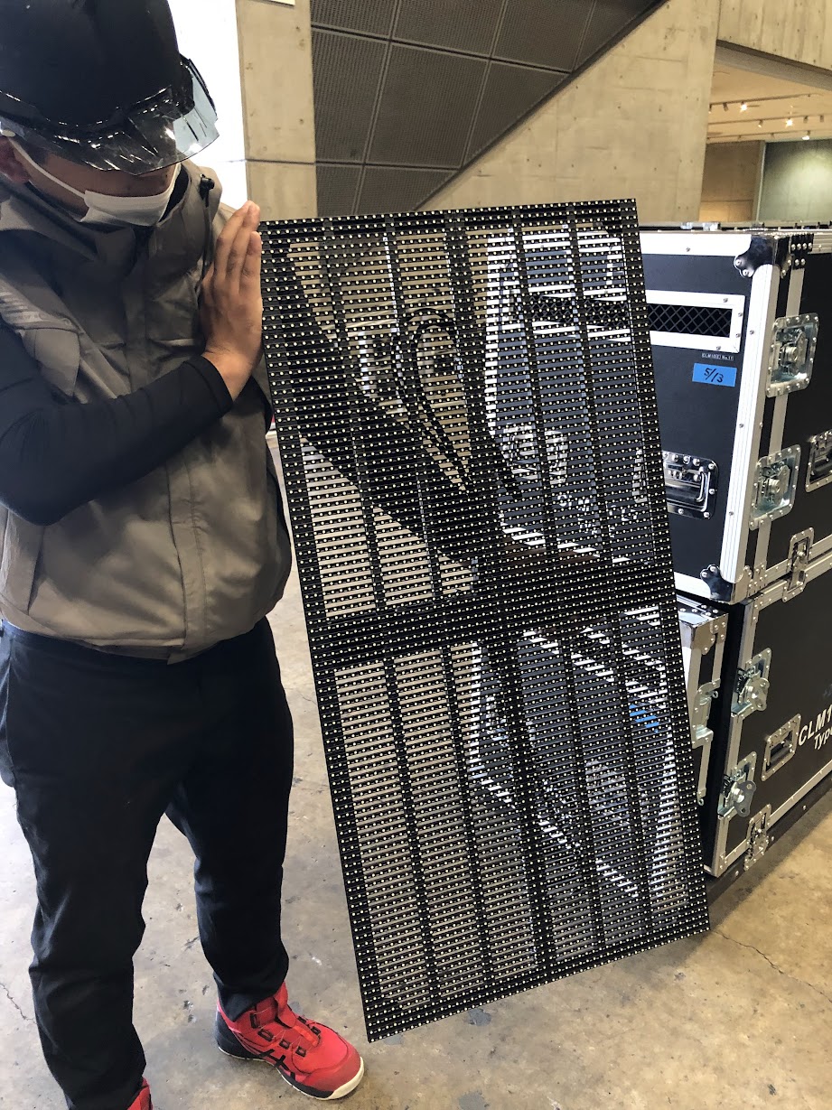 次は映像チームがLEDを搬入しています。最近のLEDは薄くて軽いんですね。びっくりしました!