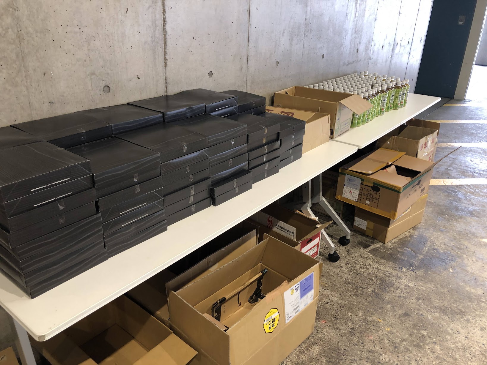 休憩もしっかりしましょう!という事でスタッフ用のお弁当も大量ですね。朝昼晩の計3食が納入されました。