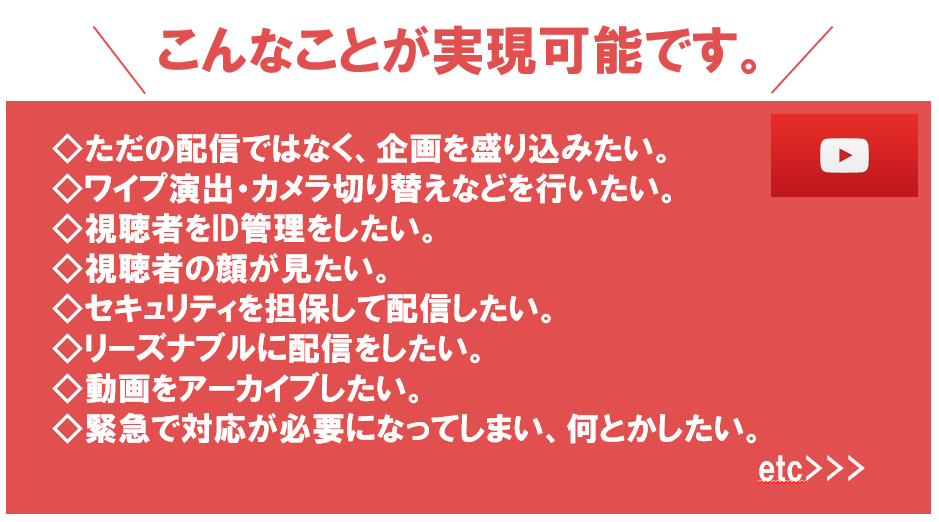 昨今の社内イベントのオンライン化、WEB配信への切り替えなどのご要望の情報を集約し、