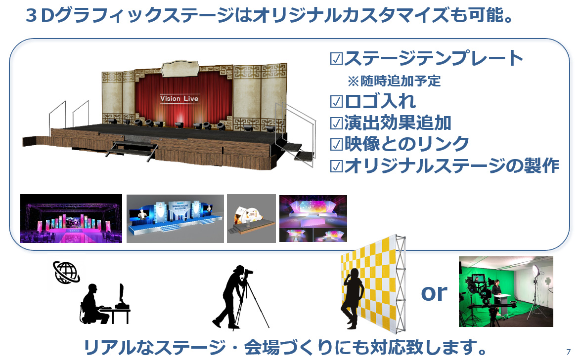 視聴環境や会場のスペックなどを気にせずダイナミックな3Dステージを活用した演出も実現します。