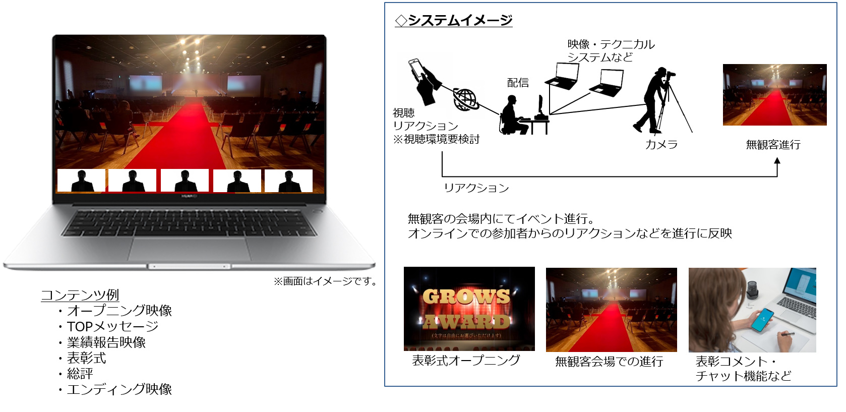 実際の会場で無観客にてイベントを進行。会場内に観客がいなくても、画面の向こうには視聴者が参加しています。