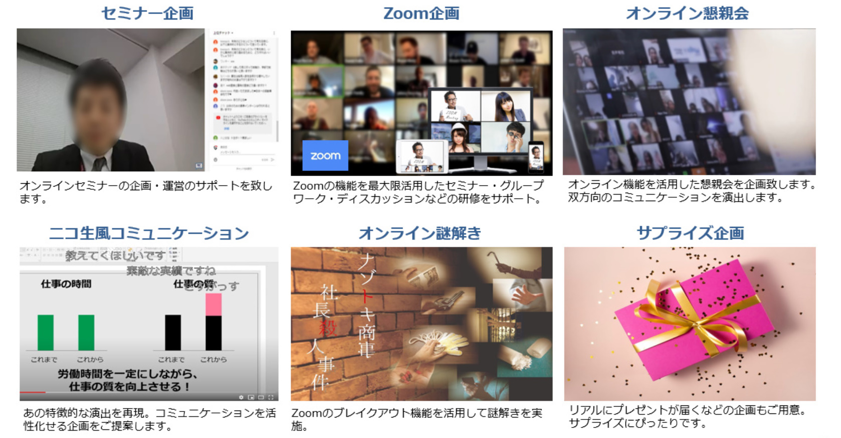 をモットーにオンライン専門の社内イベントサービスをご用意しています。