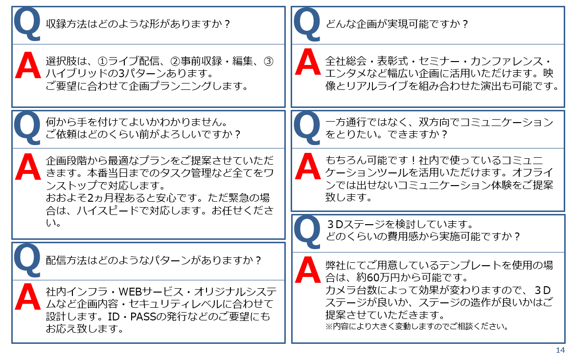 社内イベントのあらゆるシーンに対応可能なライブ配信サービスです。