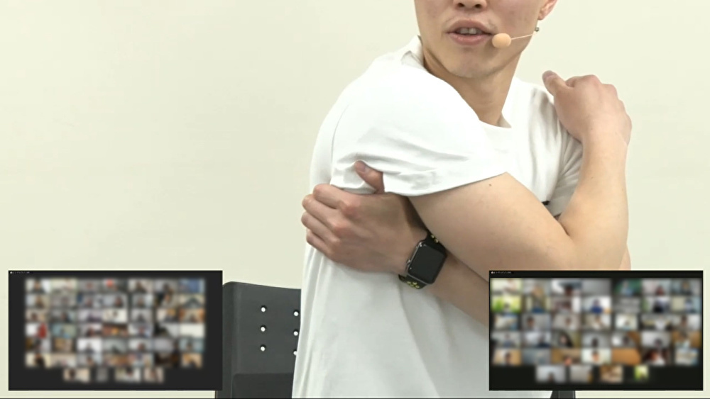 ・ZoomやYoutubeを使い、プロのトレーナーがストレッチを指導しながら一緒に体を動かします。