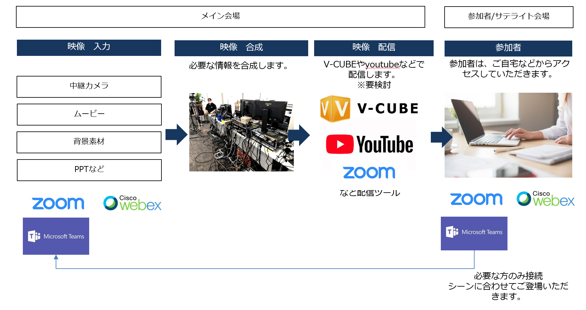 配信会場から、視聴者に届くまでをデザイン致します。